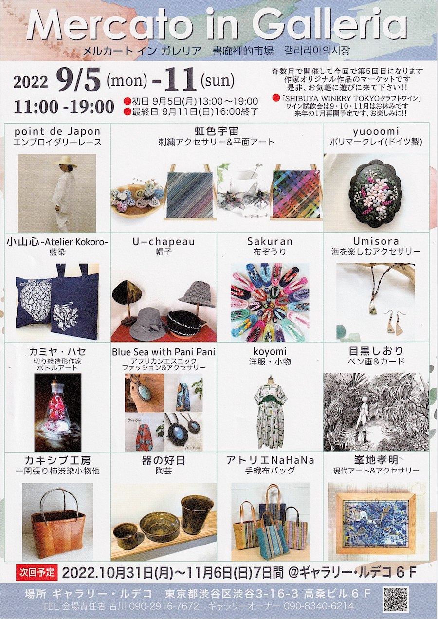 日時:9 月 5 日(月)〜 11 日(日) 11:00~19:00 (初日 13:00 ~、最終日 16:00 終了)