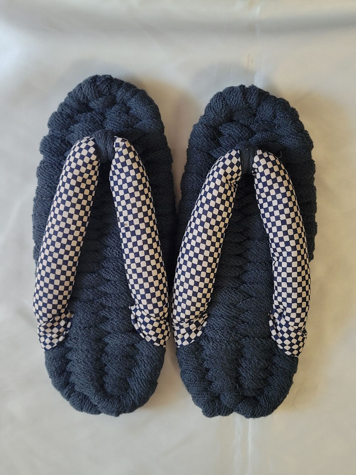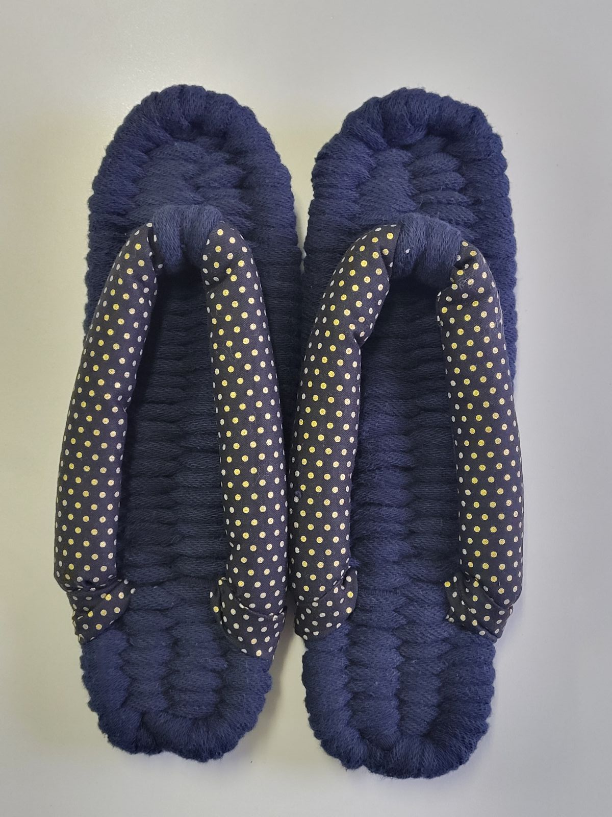 6足目です 紺色のベースに和柄の鼻緒がぴったりで素敵な1足です 丁寧に編まれています